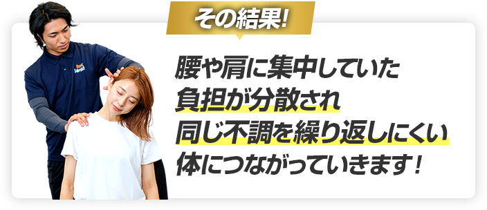 ストレッチ後、お身体のお悩みに合わせて、ご自宅でできる簡単なストレッチや気をつけた方が良いことなどをアドバイスさせていただきます。
