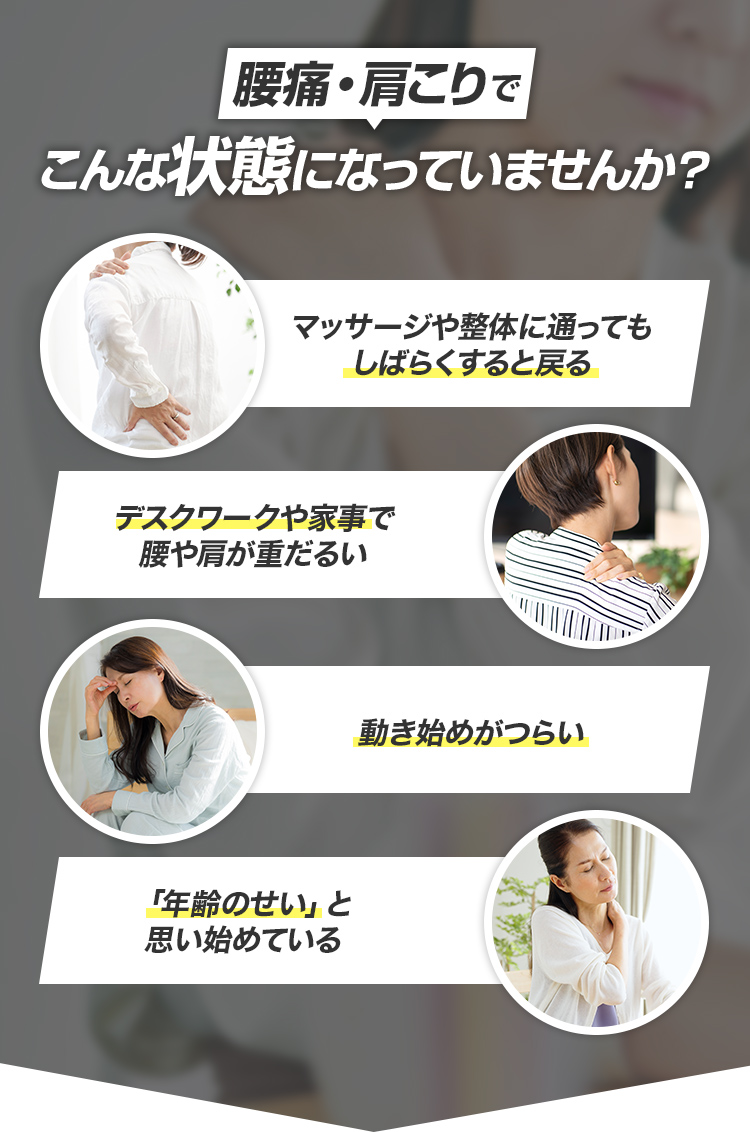 座ってる時間が長く、どうしても肩がつらくなってきます。